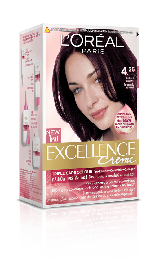 L’Oréal Paris Excellence 4.26 Purple Brown gives you mature look with playful touch and grey coverage on 40-50 y.o.